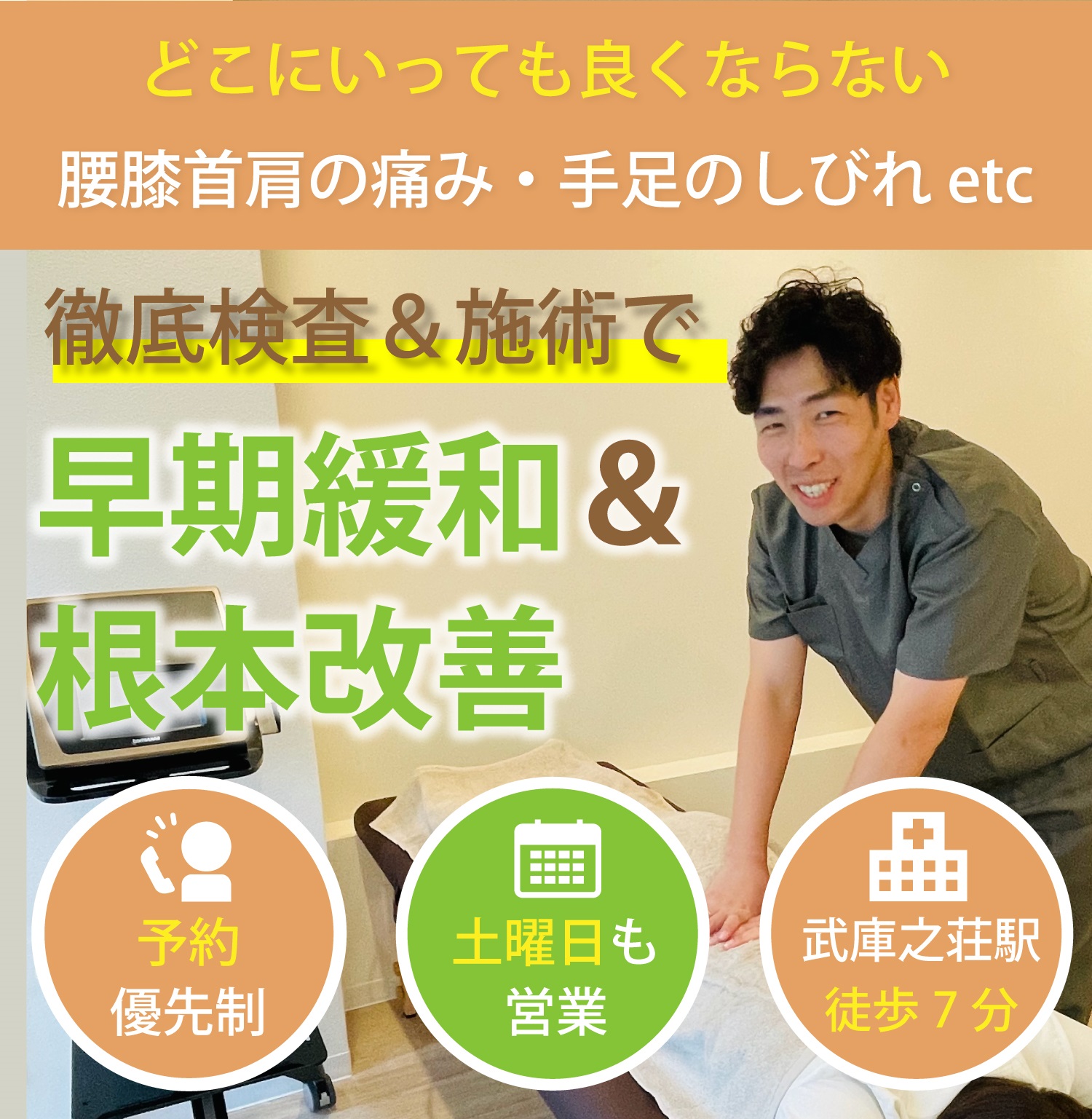 にこ整骨院は、武庫之荘駅徒歩7分にある「症状を根本改善に導く整骨院」です。