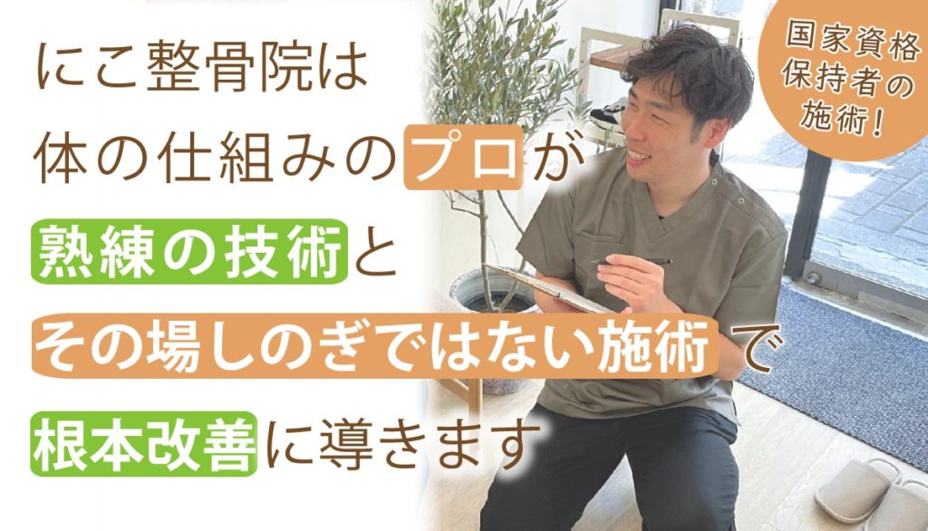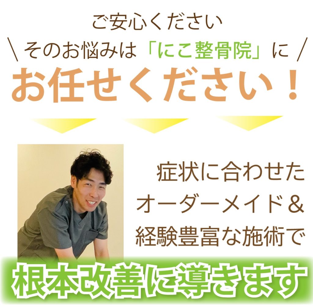 にこ整骨院は、痛みやシビレを根本改善することを追求する整骨院です。