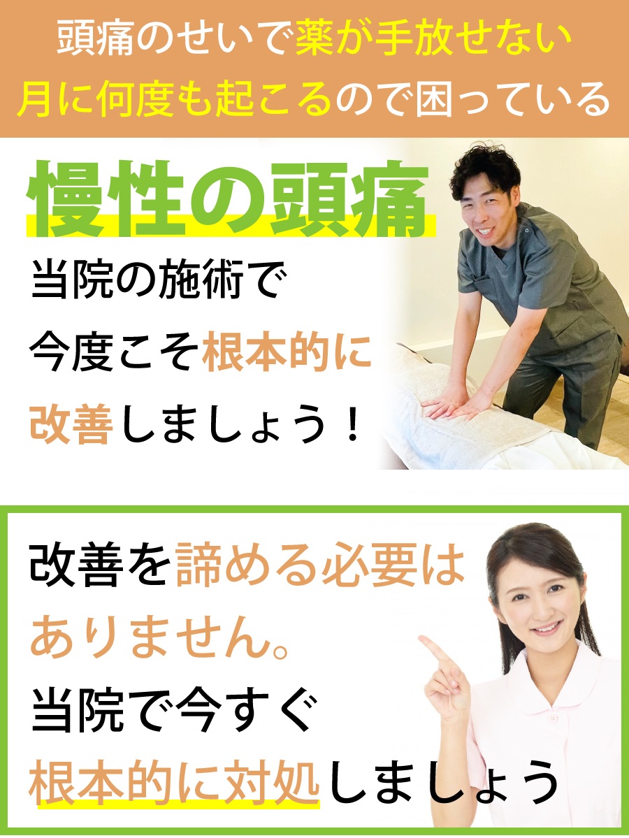 そんな頭痛でお悩みの方が多く来院され、根本改善に導いているのが当院です。